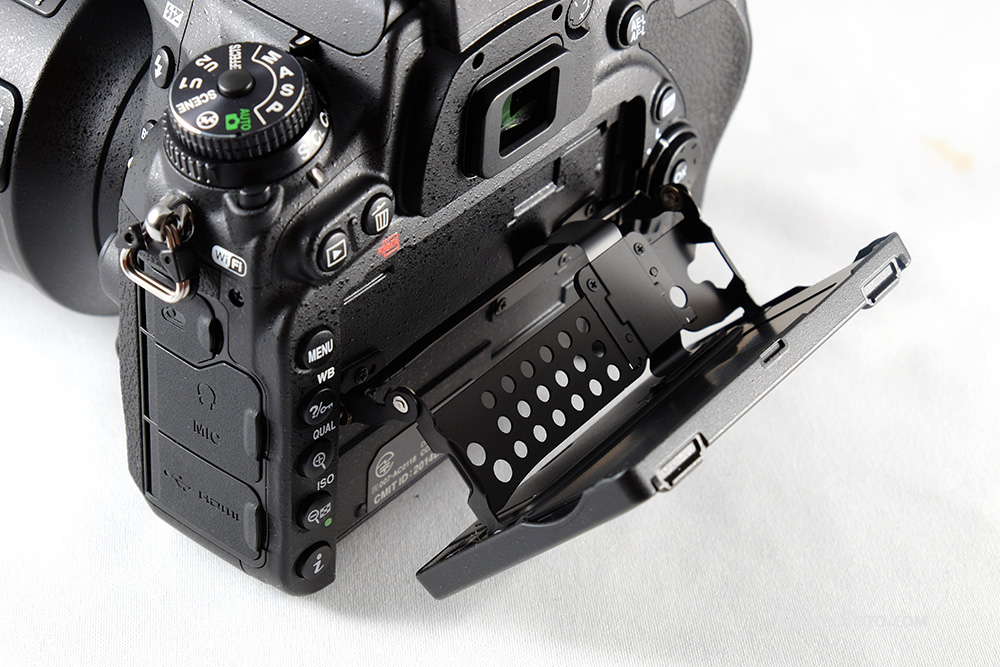 Prima curiozitate pe care am avut-o a fost sa aflu in ce masura sistemul de rabatare este suficient de solid pentru a rezista modului de utilizare la care sunt supuse body-urile din gama Pro si semi-pro. Surprinzator, dar sistemul de rabatare ales de Nikon pare suficient de solid, fiind construit integral din metal. Din pacate, ecranul se rabateaza doar vertical, nu si lateral, fiind mai dificil de utilizat pe trepied. Totusi, pe principiul „mai bine asa decat deloc”, apreciez prezenta ecranului rabatabil pe acest DSLR, deoarece imbunatateste versatilitatea body-ului si permite incadrarea mai facila din unghiuri greu accesibile (asta ca sa nu mai mentionez si utilitatea lui pentru cei care filmeaza!). As zice ca „era si timpul…!” sa avem asa ceva si pe DSLR-uri.