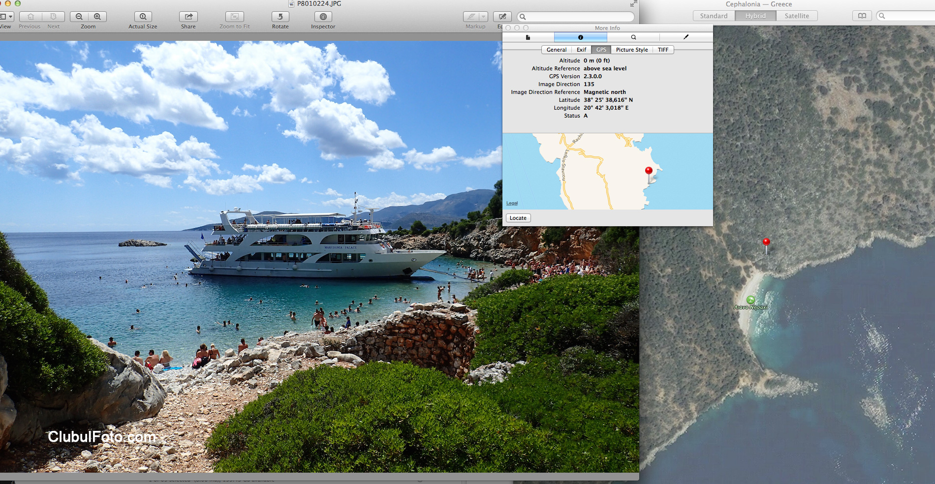 Sistemul performant de localizare prin GPS permite inregistrarea in EXIF-ul fotografiilor a coordonatelor Latitudine si Longitudine cu o acuratete deosebita. Pe calculator, puteti vedea exact locul in care ati fotografiat, coordonatele asigurand localizarea cu precizie de cativa metri, asa cum se poate vedea si din testul facut de noi, mai jos: