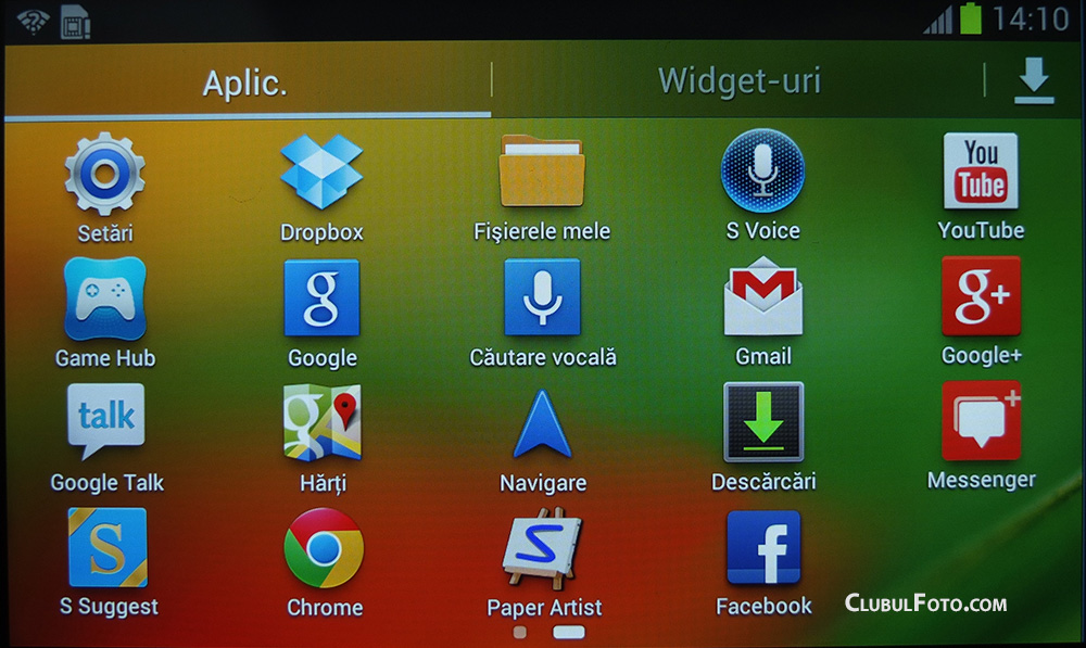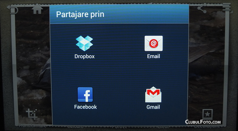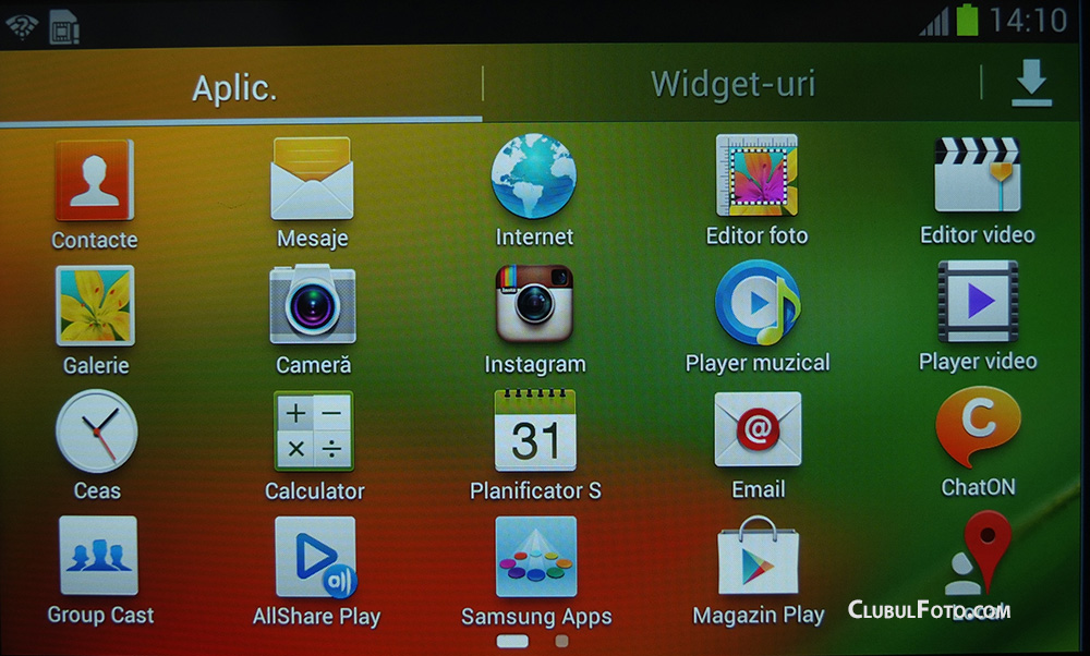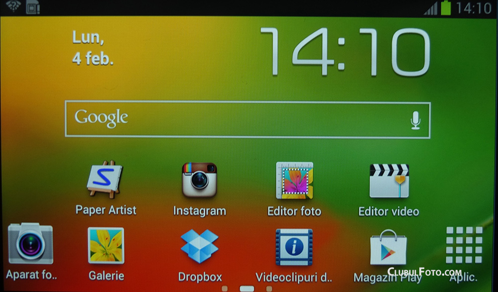 Incepem cu ecranul de start, specific sistemului de operare Android 4.1. Galaxy Camera vine cu o multime de aplicatii preinstalate, printre care si doua aplicatii de editare foto si un mini-editor video.