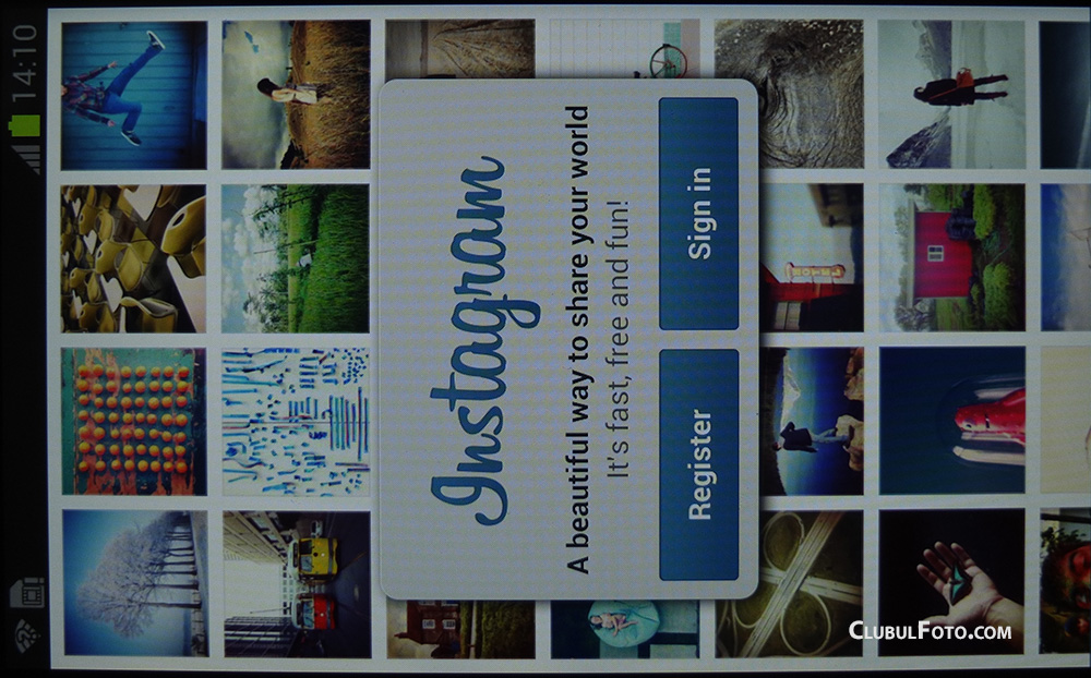 Prima aplicatie care iti sare in ochi pe ecranul de start al camerei este Instagram. Samsung Galaxy Camera are Android 4.1 si (cred ca) vine cu Instagram preinstalat, ceea ce automat ma duce cu gandul la utilitatea acestei camere si la fotografii careia i se adreseaza. Sunt sigur ca isi va gasi adepti printre fotografii amatori si entuziasti, dar mai ales printre fanii fotografiei cu mobilul si ai sistemului de operare amintit mai sus.