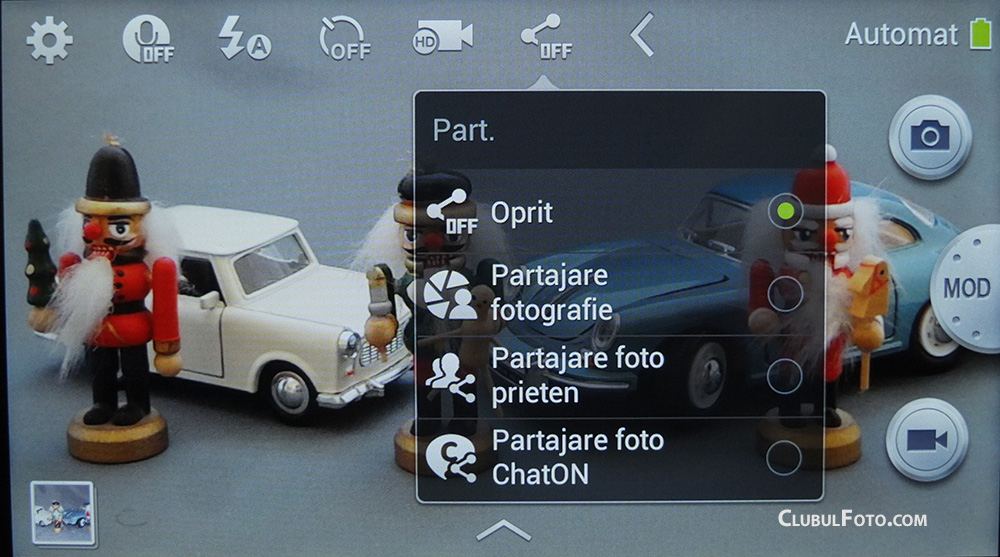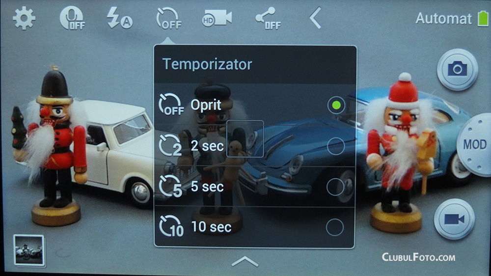 • Iesirea din functia foto in meniul Android implica retragerea obiectivului, de fiecare data, chiar si pentru a schimba o setare