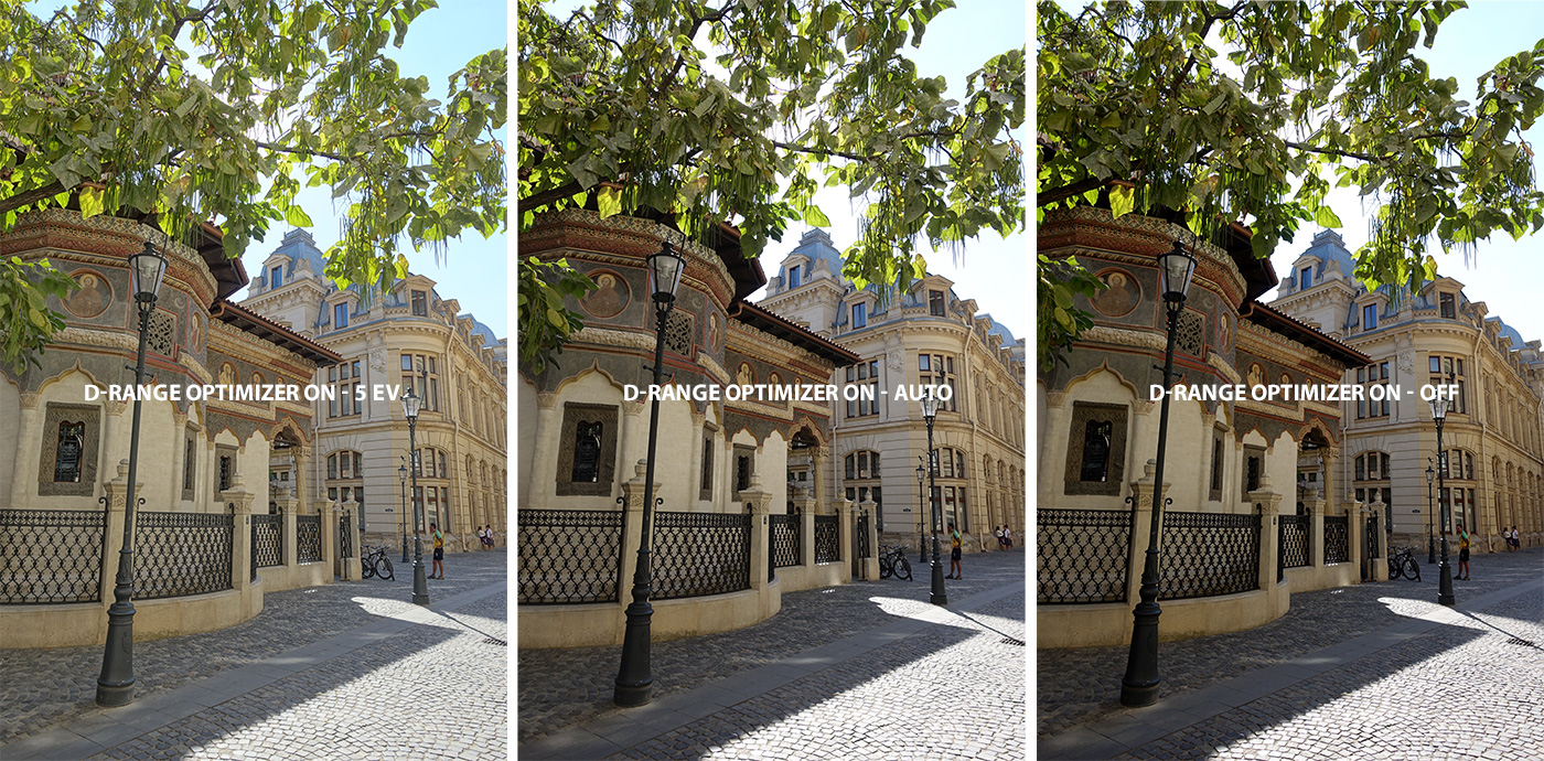 Doua functii foarte utile si foarte importante cu care se lauda A5100 sunt D-Range Optimizer si Auto HDR. Prima, activa implicit, optimizeaza in mod automat nivelul de detalii in imaginile cu contrast puternic, astfel incat fotografiile sa fie echilibrate. D-Range Optimizer poate fi totusi ajustat de catre utilizator, pentru a creste (sau a scadea) puterea efectului. Pe de alta parte, RX100 III poate face si cadre HDR direct din aparat, inregistrand 3 imagini consecutive, cu expuneri diferite, pe care le suprapune intr-un singur cadru, final. Si aici poate fi ajustata latitudinea de expunere a HDR-ului (de la +/- 1EV pana la 5EV). Iata un exemplu pentru a va face o idee despre cele doua functii despre care am vorbit acum: