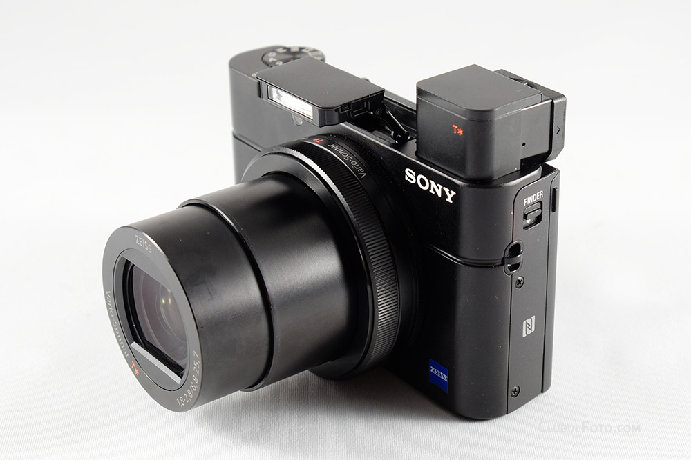 Asadar, specialistii Sony au renuntat la patina pentru blitz extern – destul de incomod de utilizat cu un aparat atat de compact – si au introdus un vizor electronic pop-up. E mic, asadar cum se vede? Ei bine, vizorul este foarte inteligent construit: are un sistem optic in fata mini-ecranului LCD integrat care face ca imaginea sa se vada mare si clara, iar corectorul de dioptrie (da, are si asa ceva!) ii va ajuta cu siguranta pe cei care poarta ochelari. Vizorul electronic se vede bine, nu are lag sesizabil iar rezolutia inalta va permite chiar sa incercati sa focalizati manual, daca vreti sa experimentati si aceasta functie a lui RX100 III (pentru care aparatul are si sistemul de asistare a focalizarii numit Peaking Focus).
