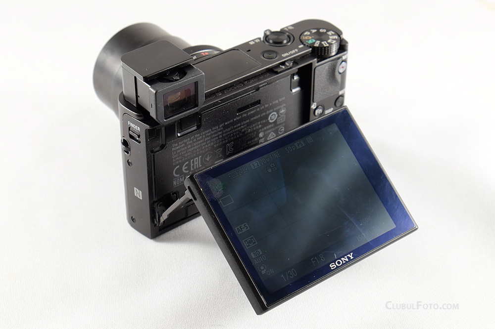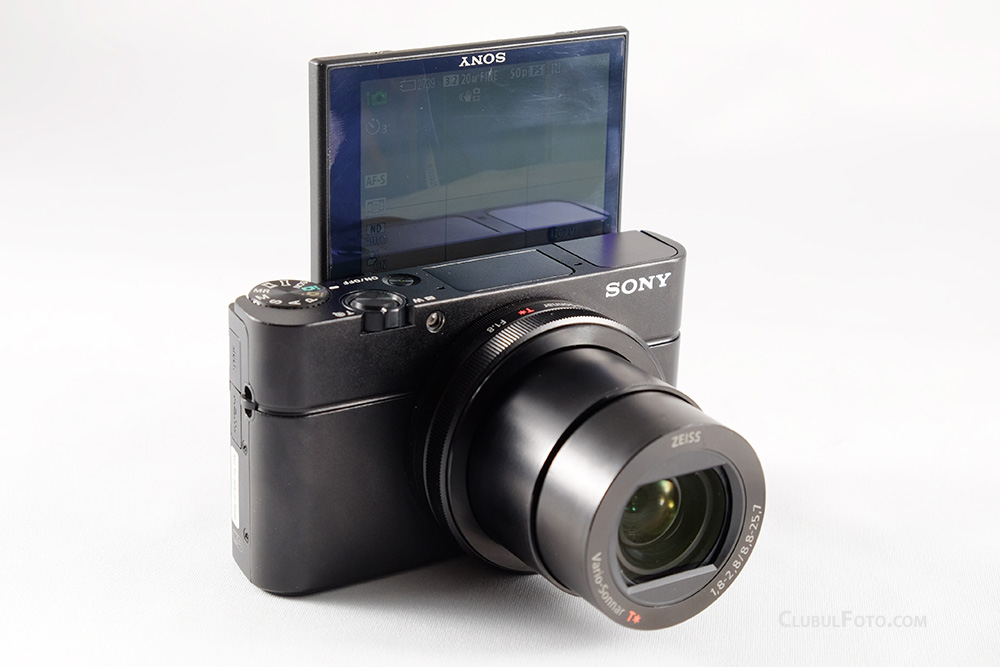 In rest, Sony RX100 III nu difera foarte mult la exterior fata de modelul anterior, RX100 II (review aici). Are ecran LCD rabatabil, care acum se poate intoarce si pentru a inregistra auto-portrete (fanii selfie-urilor vor fi cu adevarat multumiti, acum!), iar butoanele desi sunt mici (proportionale cu dimensiunile reduse ale aparatului, am putea spune), se apasa usor si comod, fara prea mari probleme chiar si pentru cei cu maini relativ mari.